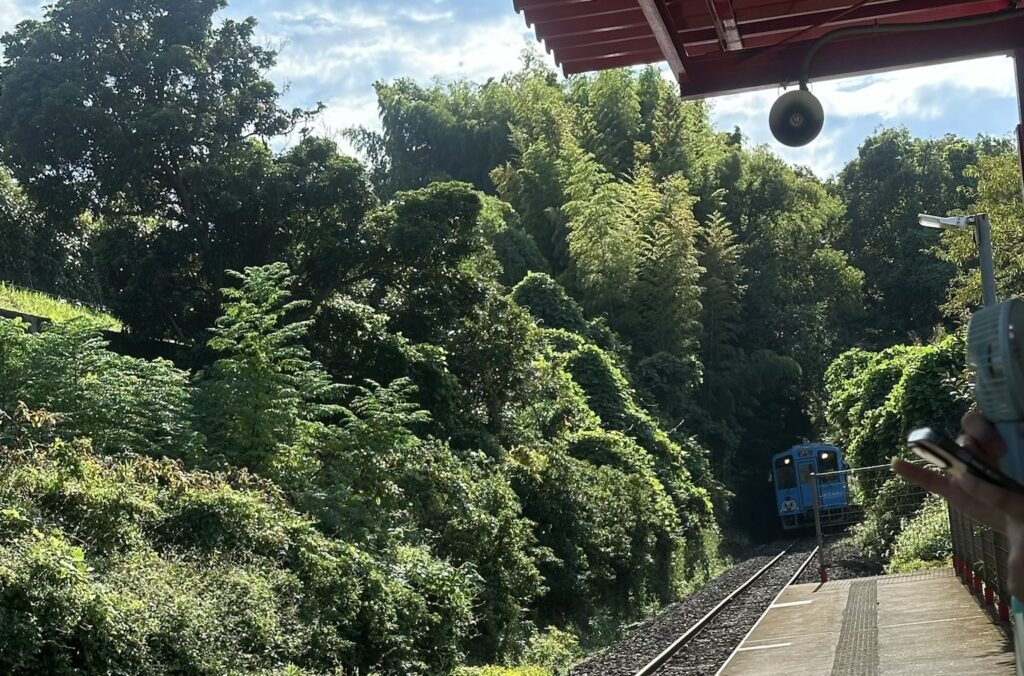トトロの世界に出てきそうな電車を乗り継ぎ、トンネルを抜けていく道でした。